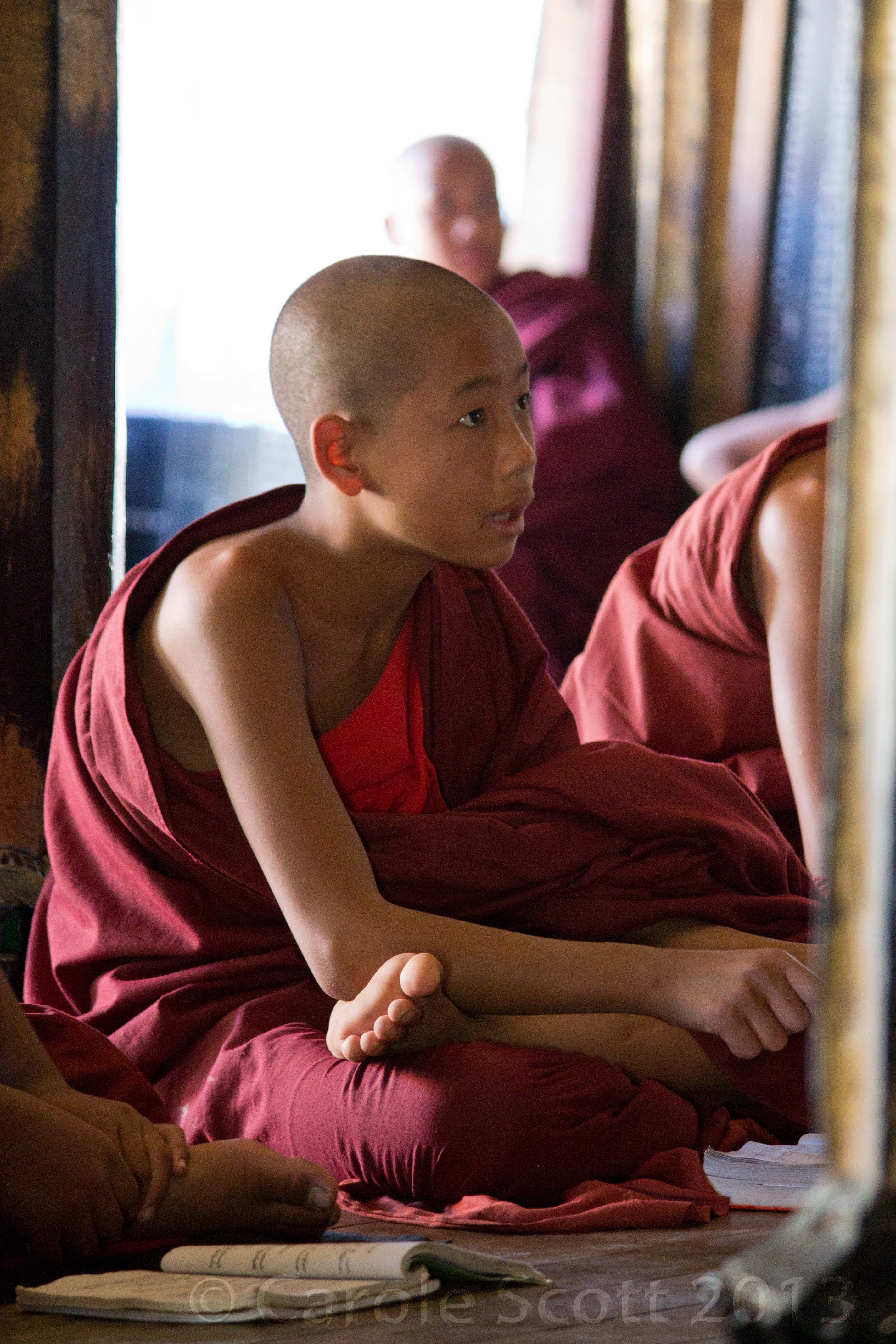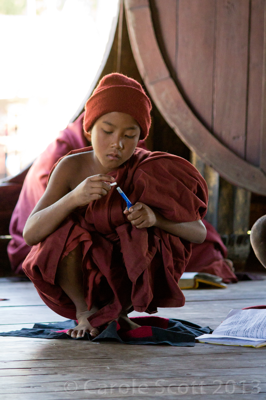 Here’s a puzzling thing. Back home when I think of young boys and girls going off to boarding school before their teens, I feel a sense of outrage, that they are too young to be shipped off and if their parents wanted them, why are they sending them outside the home. So how come I had none of that feeling in Burma, seeing young monks and nuns in a similar situation? I have no explanation for my double standard.