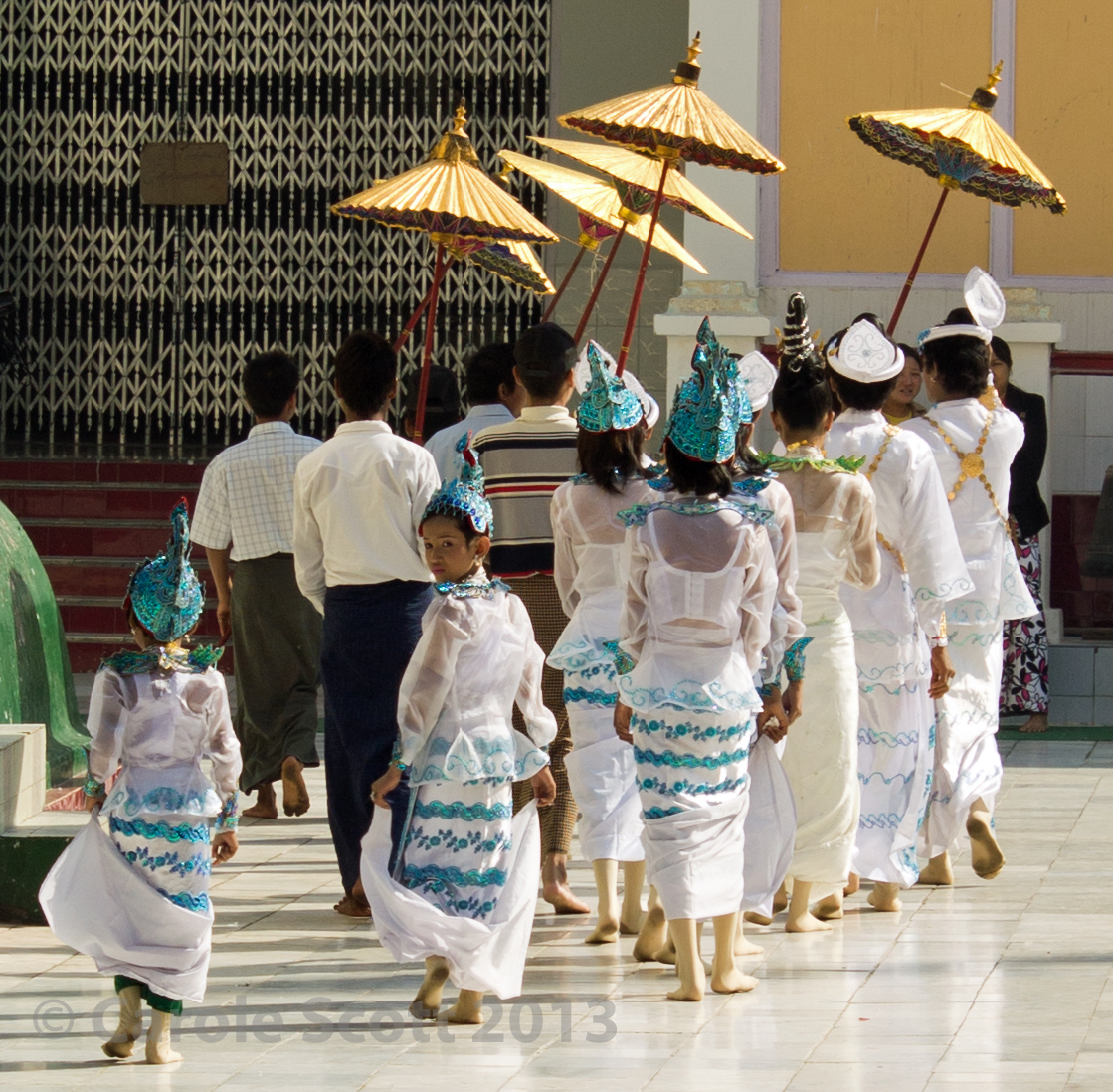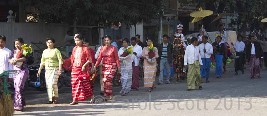 On the way back, we had our best luck of the holiday. We stumbled upon a novitiate procession. Young boys and girls often go to become monks and nuns for a few years, at a very young age. It was such a surprise and such a feast for the eyes.
