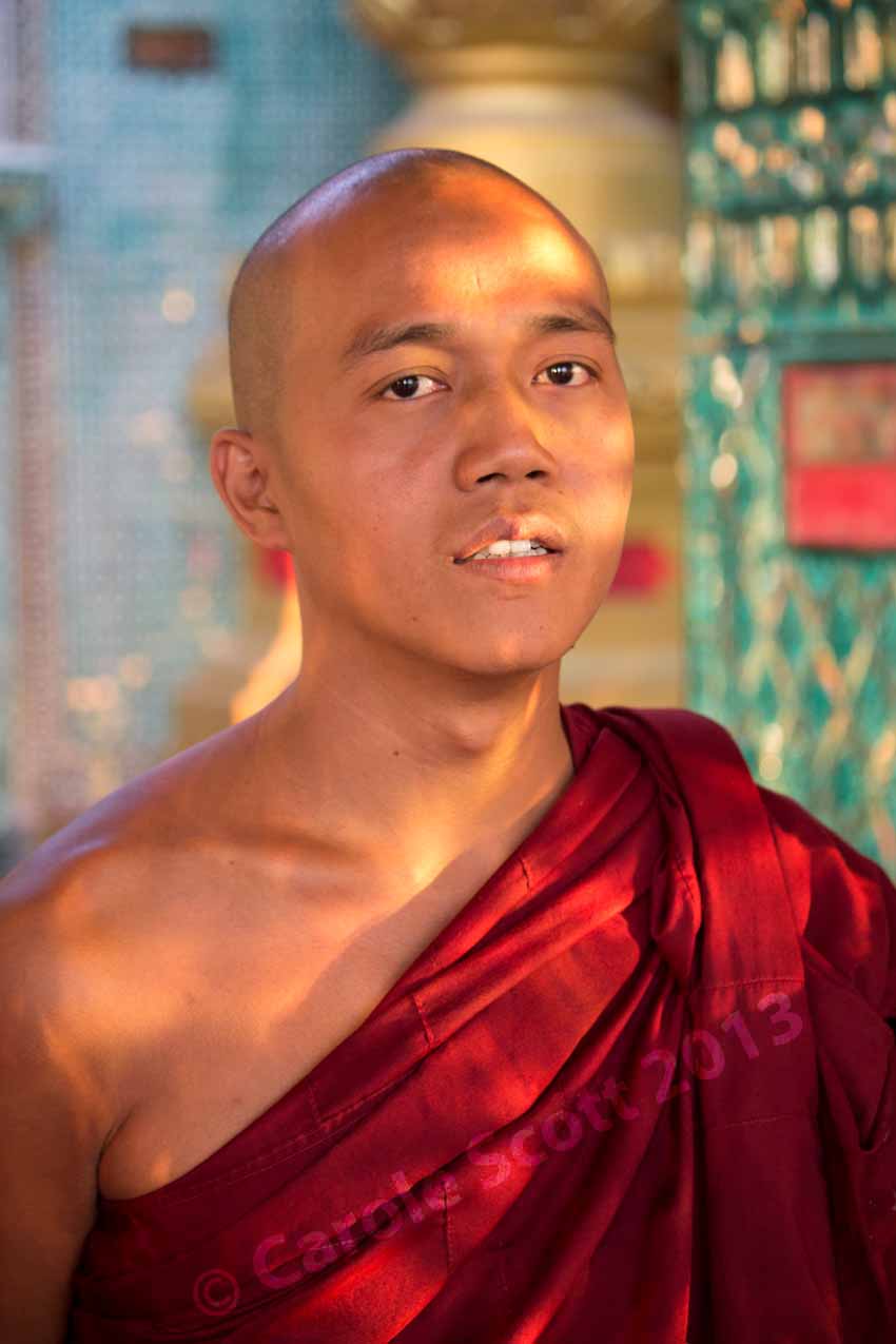 One monk asked me if I liked Myanmar. ‘I love it!”, I replied, and then asked how I say ‘I love it’ in Burmese. I haltingly learnt the sentence. When I relayed it proudly back to our tour leader, he chuckled. The monk had taught me to say “I like you very much”. Cheeky Monk!