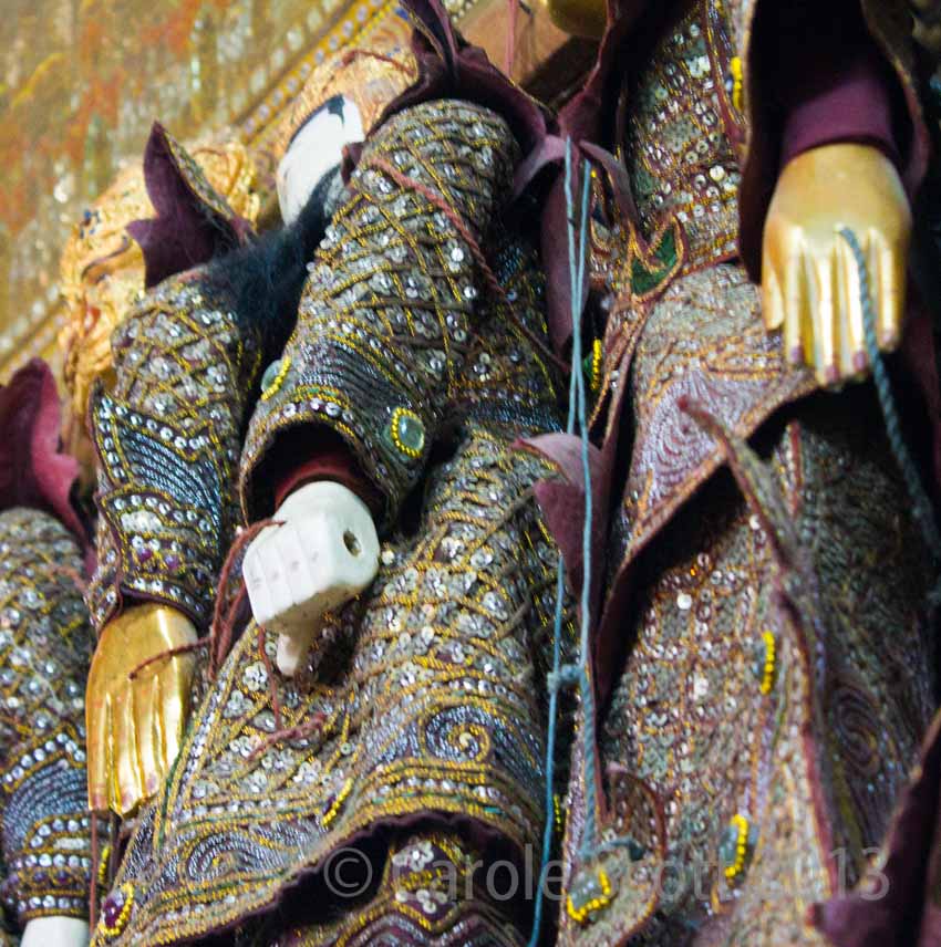 We spent the rest of the morning at Mandalay’s main pagoda (where we saw the novice nuns again) and looking round the wood carving and stone masons areas. It was shocking to see the conditions the stone masons worked in – no mufflers on their ears and no face masks to protect them from the heavy dust.