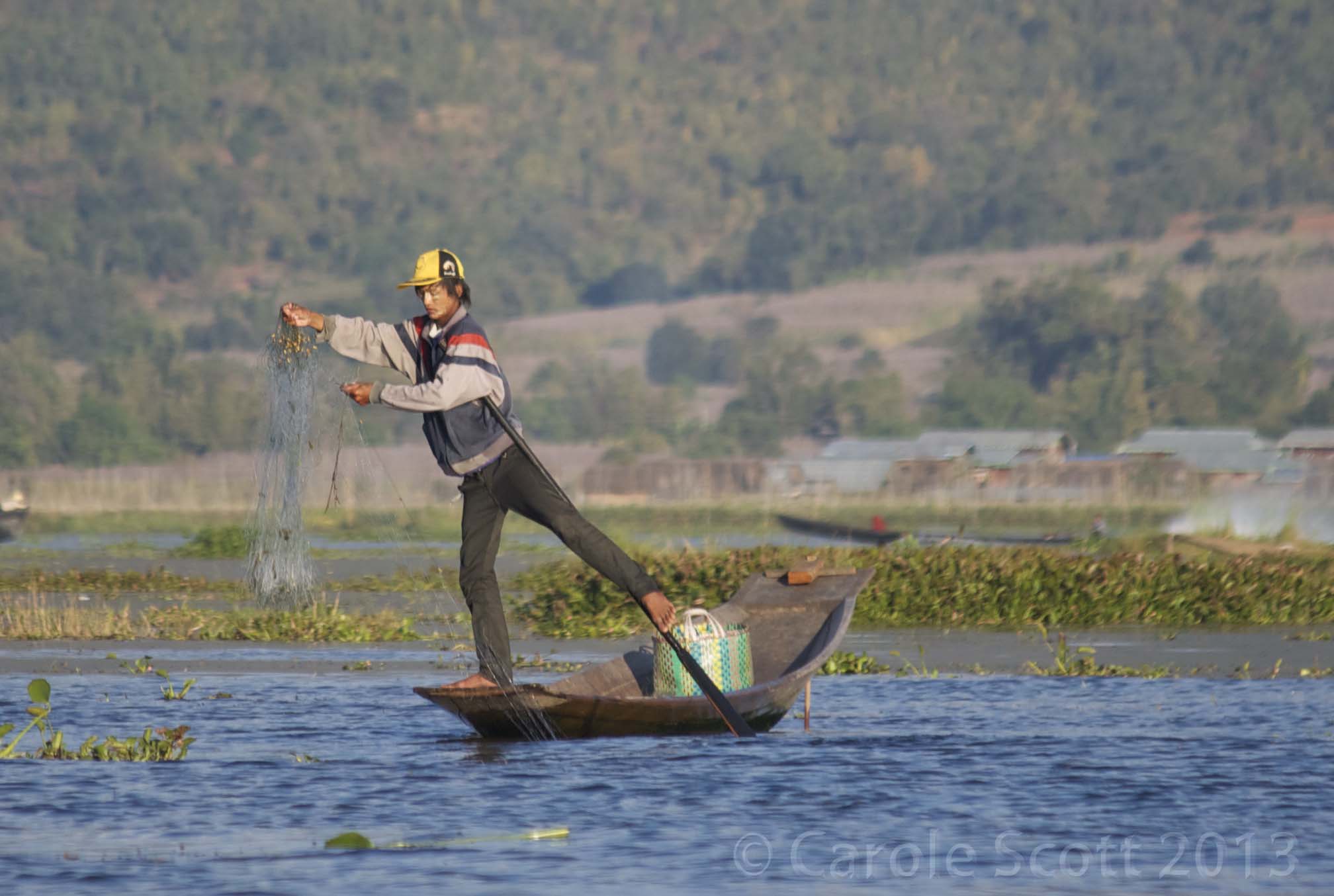 The unique rowing style of the Inle Lake fishermen